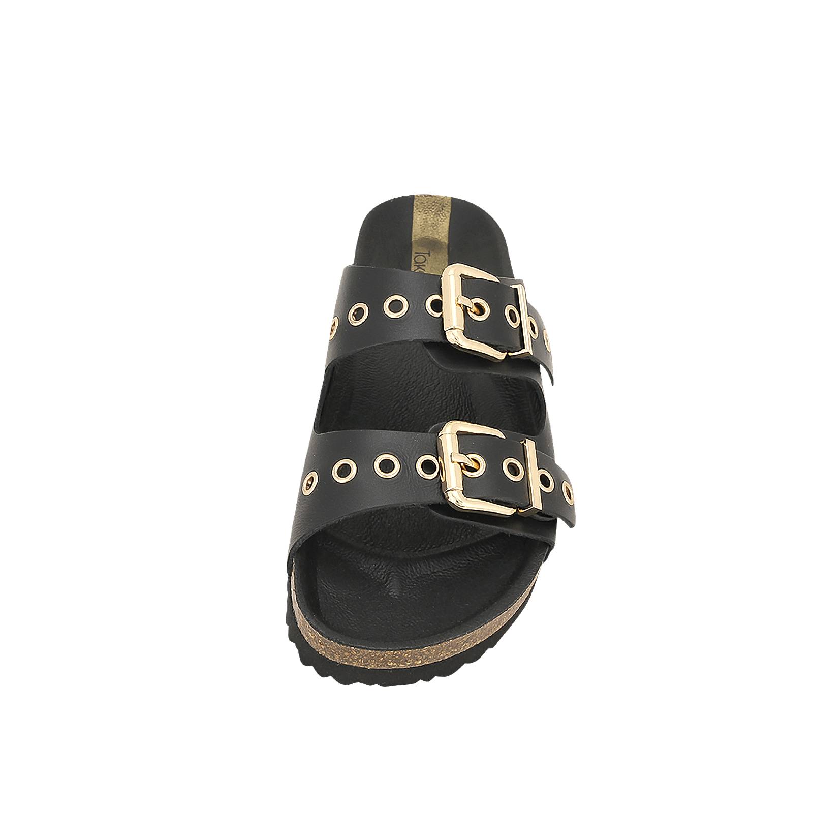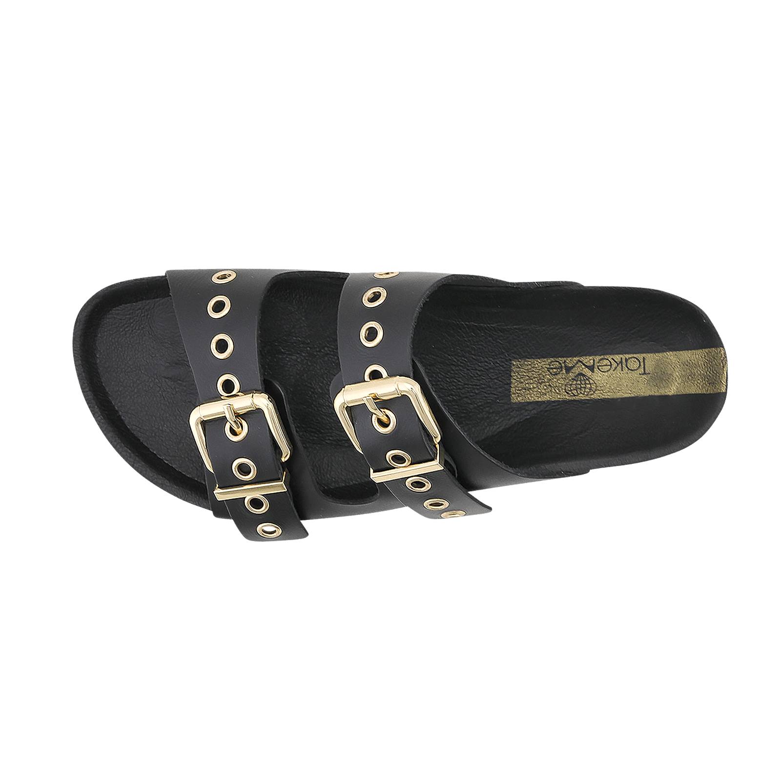 Take Me Women's flat sandals made of leather with leather lining and synthetic outsole. Available in Black color.